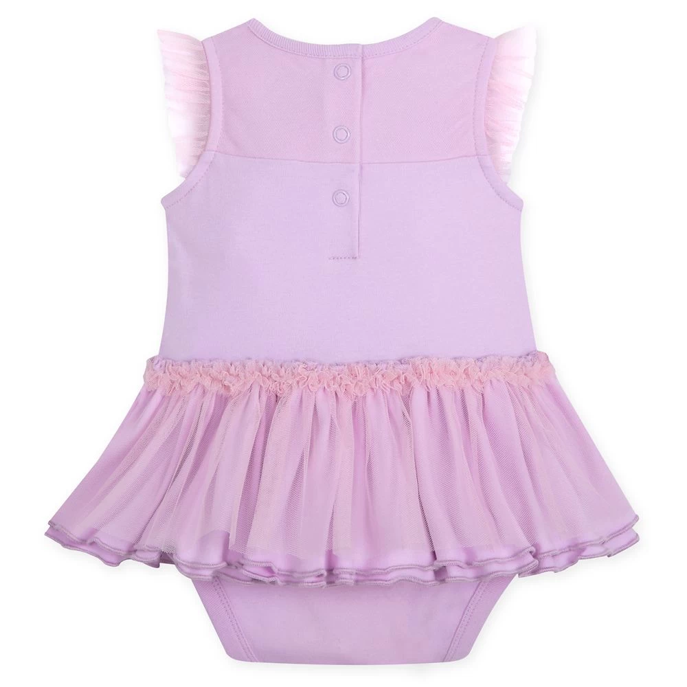 Your aspiring Little Mermaid will be swimming in compliments when all dressed-up this soft cotton bodysuit costume with ruffled wing sleeves, layered peplum, a glittering shell appliqué and matching headband.