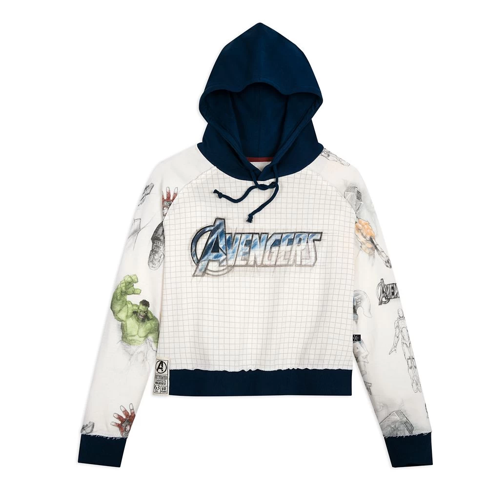 For a truly mighty look, this Avengers pullover hoodie by Heroes & VIllains incorporates powerful screen art and a graphic print with the super soft comfort of French cotton terry. Part of Marvel Avenger’s 60th anniversary, this stylish top has a contrast hood and frayed trim for a look that’s chic enough for Stark Tower yet laidback enough for Tony’s Malibu digs, but you can wear it anywhere.