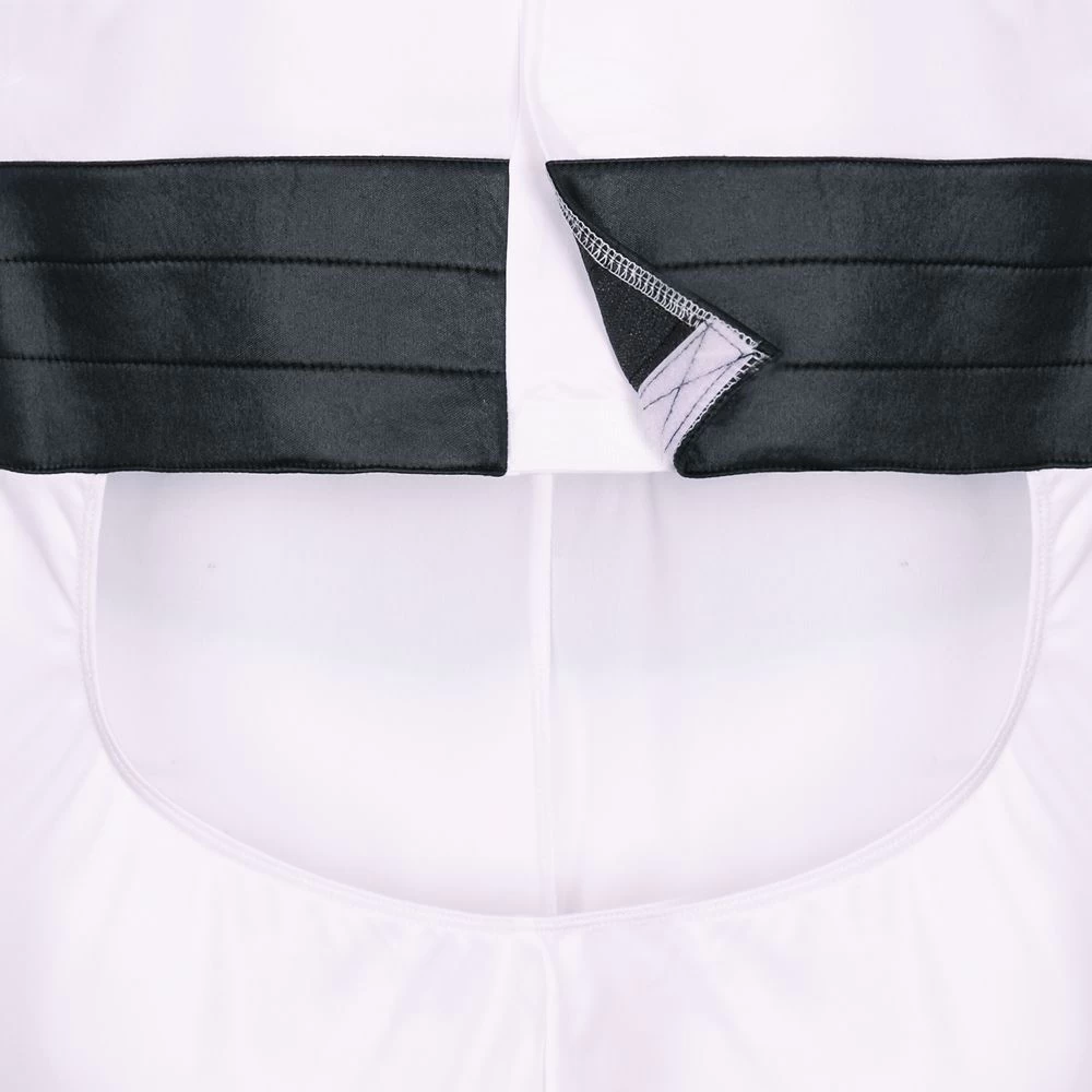 - Costume opens in back for front entry only, with self-stick fabric closure