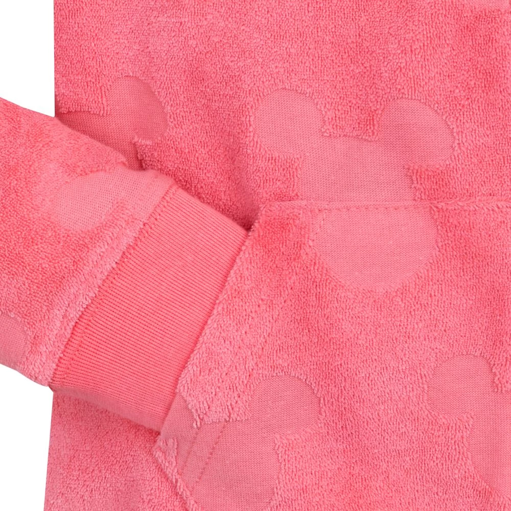 The ever fashionable Minnie looks super chic in her sunglasses on the front of this cute pink zip hoodie. The soft terry fabric features an allover burnout pattern of Mickey icons. Pair it with the coordinating shorts to complete the cool and comfy set. Part of the Mickey Mouse Summer Collection, it will have you looking forward to warmer days!
