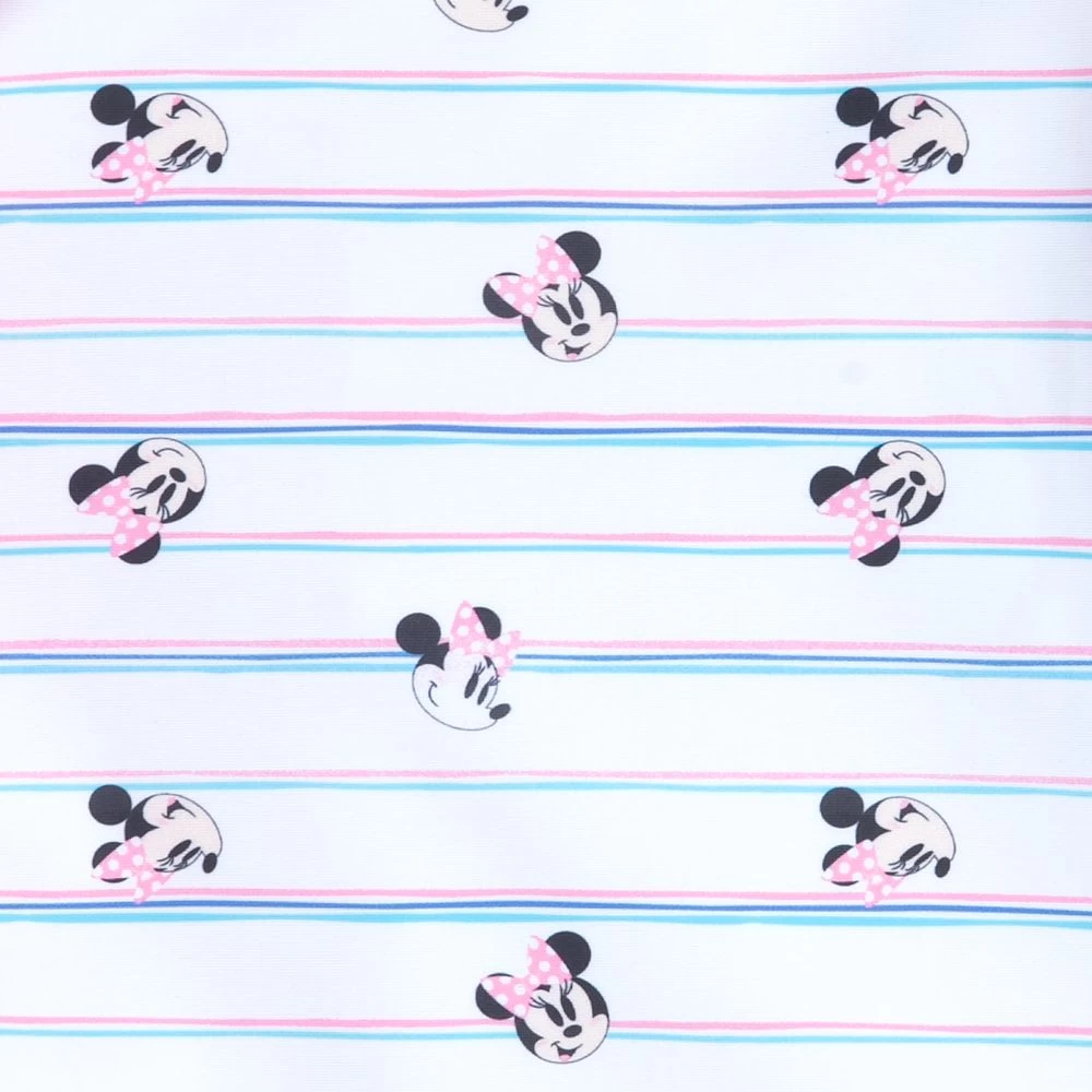 Your baby can hit the beach or pool in oh-so-sweet style in this adorable one-piece bathing suit featuring Minnie Mouse. The rash guard-style suit has contrasting long sleeves, front zip, ruffled detailing at hips, plus snaps between the legs for easy on and off.