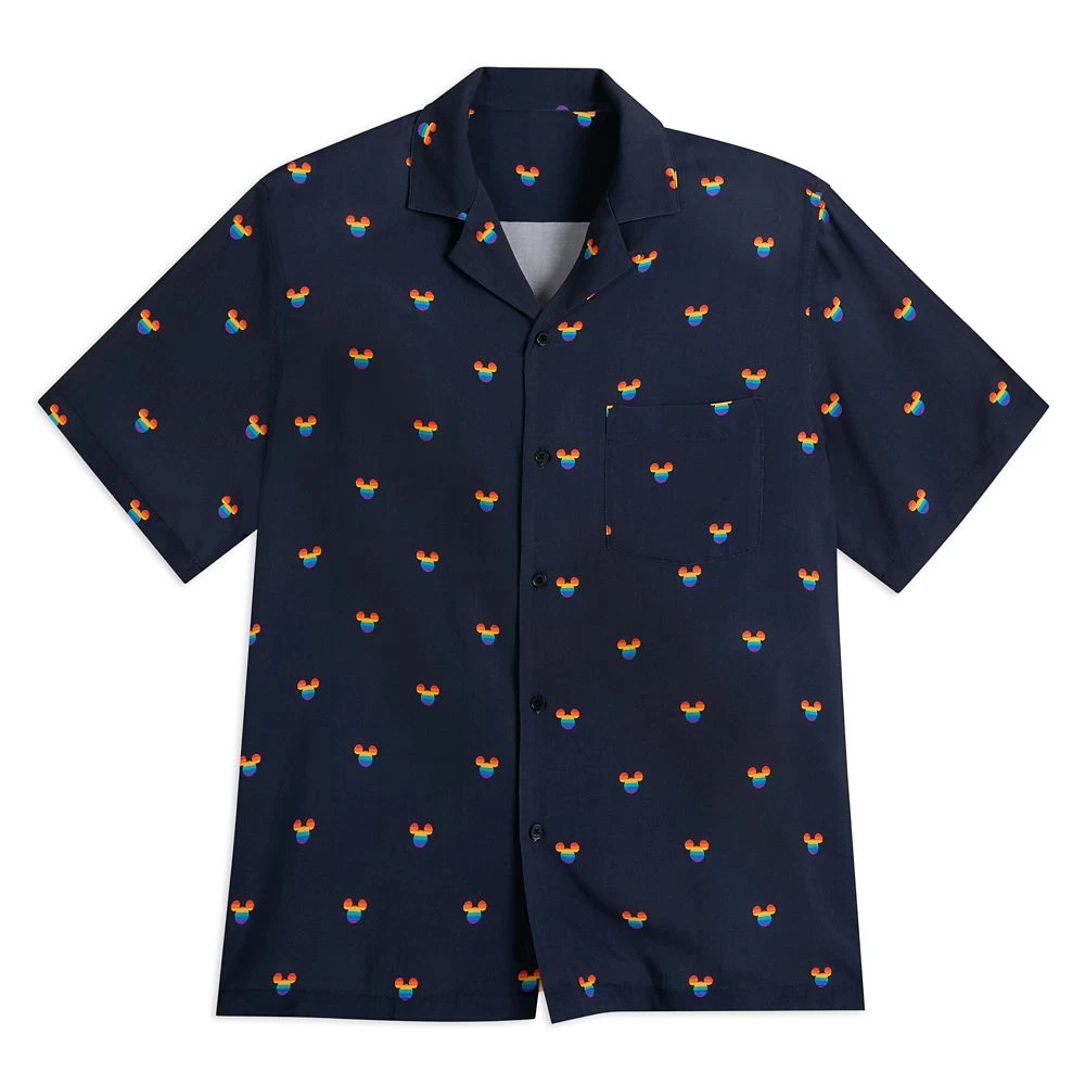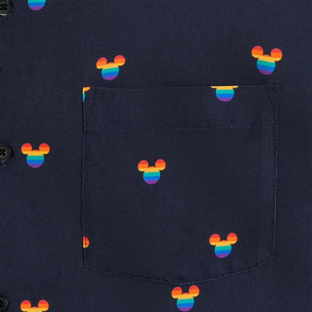 Show your true colors in this button front woven shirt with an allover print pattern featuring a rainbow striped Mickey Mouse icon. Classic styling is blended with a contemporary spirit on this casual and comfortable viscose shirt.