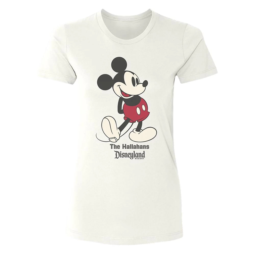 Add a personal touch to your trip down Main Street in this Disneyland t-shirt. Available in a choice of colors, it features Mickey Mouse in his classic standing pose paired with a personalized name, lending a familial flair to any Disney Parks adventure!